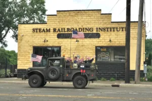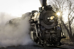 Due to our rolling stock being in original historical condition, our fleet of passenger cars is not ADA accessible, and fall under exemption from ADA regulations (Sec. 12142, Sec. 12148). We sometimes have a limited number of seats available for passengers with limited mobility, but passengers will still need to climb several stair steps. The Steam Railroading Institute reserves the right to change motive power or rolling stock at any time, including substituting diesel power for steam. Departure times are subject to delays due to freight traffic or mechanical issues. All firearms (Concealed or Open Carried) are prohibited on the property or on any locomotive, car, or equipment of the Steam Railroading Institute. Smoking on the train or in the SRI Welcome Center is also prohibited.